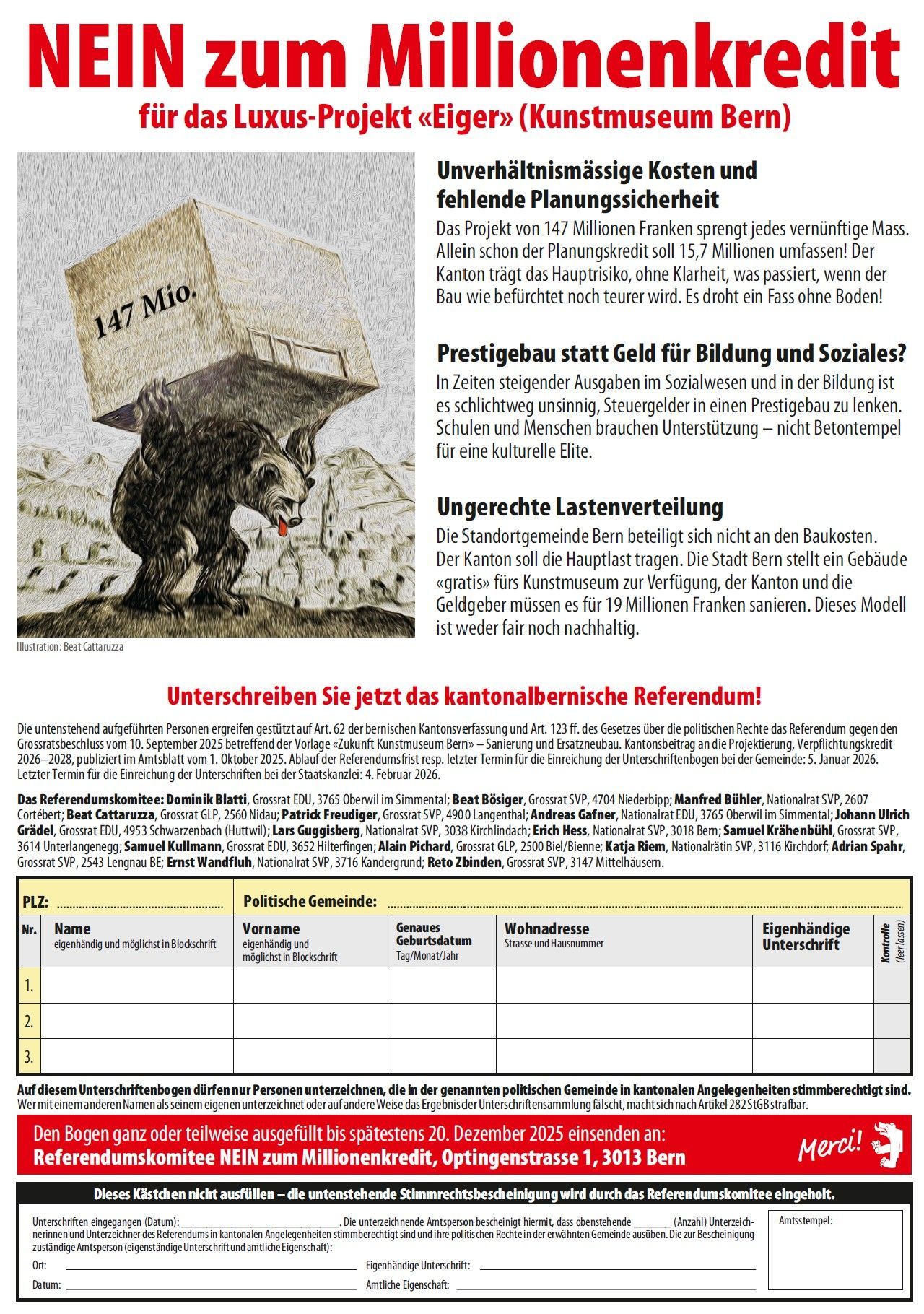 Unglaublich, wer soll das alles bezahlen? Wir nicht - daher - jetzt noch bis am 20. Dezember 2025 das Referendum unterzeichnen, damit die Berner Stimmbevölkerung das letzte Wort hat.