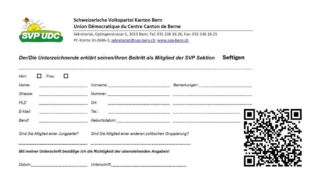 Sie können sich direkt mit dem Handy zum Parteibeitritt zu unserer Sektion Seftigen anmelden: